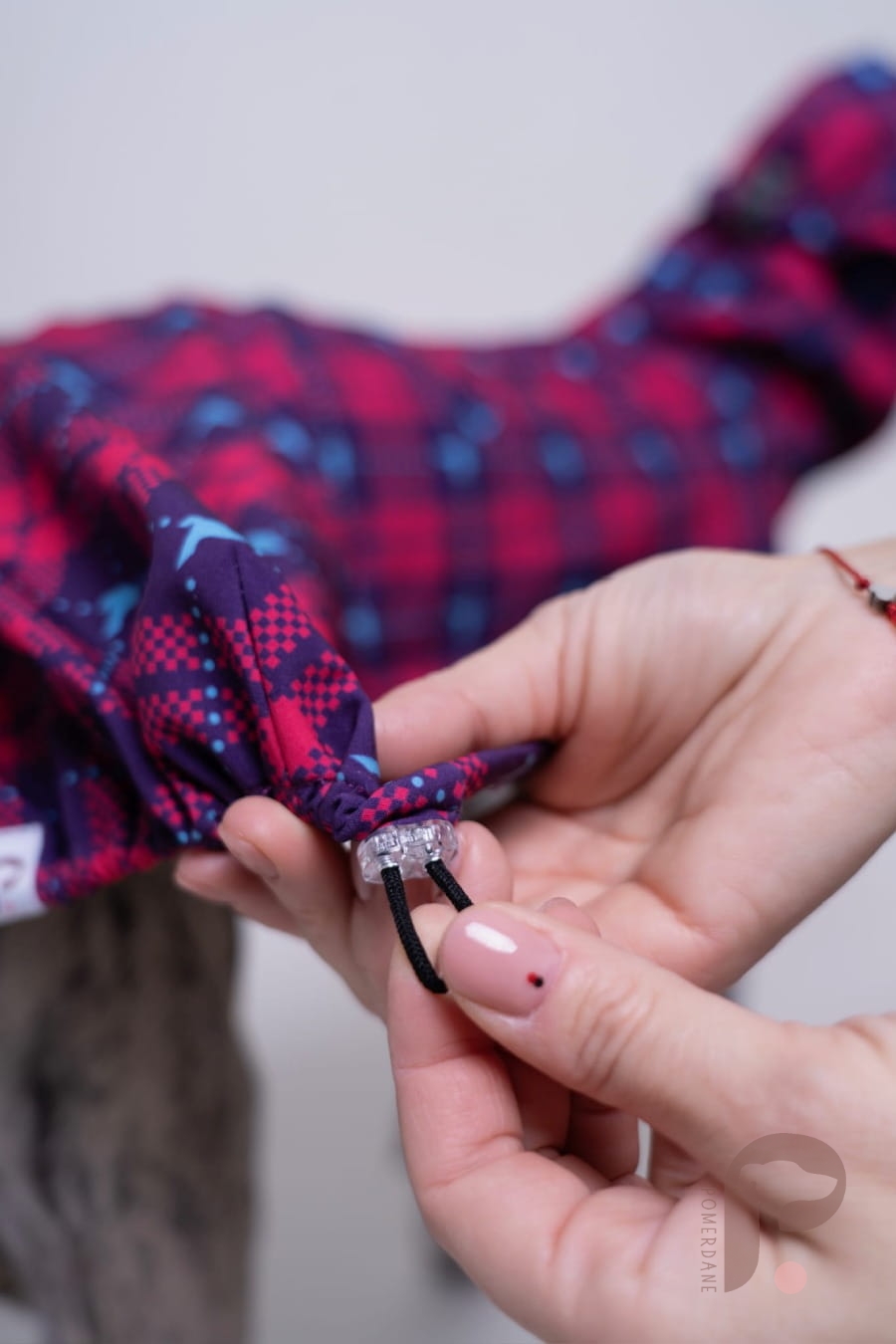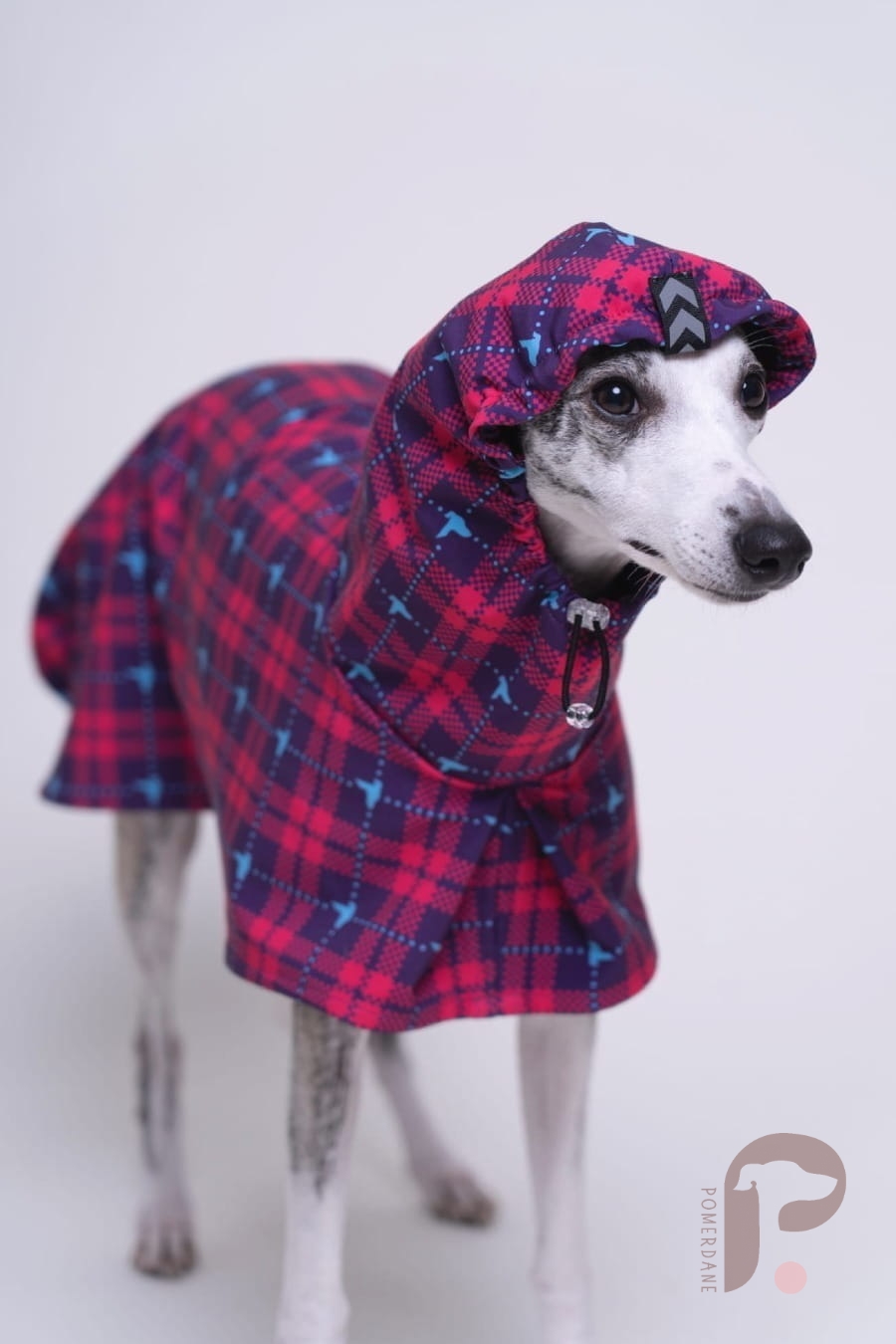 Bardzo lubimy ten płaszczyk, jest mięciutki od wewnątrz - podszyty miękką i ciepłą tkaniną. Ma wycięcie na obroże i na szelki. Do tego kaptur który jest sztywniejszy, działa jak daszek i nie spada z głowy nawet jak pies się otrzepuje.